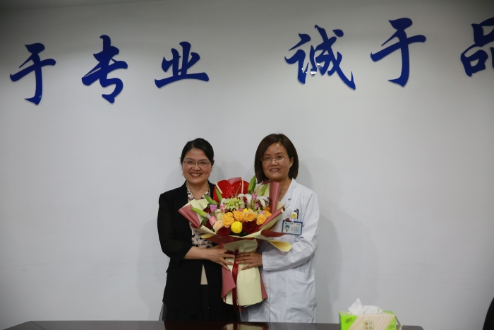 王娇俐一行来到我院,看望慰问妇产科主任、主任医师马建婷,市卫健局党委书记、局长李斌,院党委书记赵孝杰,院长黄怀钱等人陪同。
