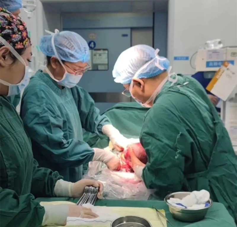 有剖宫产史的孕妇再次妊娠有一定的几率发生子宫破裂。而子宫破裂则会引起产妇大出血、胎儿窘迫、胎死宫内,新生儿患病率及死亡率明显上升,如果抢救不及时会导致子宫切除甚至孕产妇死亡。情况万分危急,整个医院的危急孕产妇救治机制立即启动。